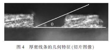 圖3(a)是普通光源照射情況下所獲得的厚密線寬圖像,圖3(b)表示光源照射后的切面成像情況。