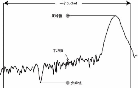 顯示的跡線點通常稱為“bucket”。頻譜分析儀進行數據點采樣的時間稱為“bucket間隔”。圖2顯示了選擇不同檢波類型會對給定bucket的顯示跡線點產生什么影響。