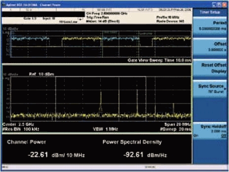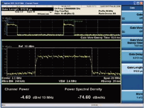 圖4圖中的信道功率測量使用WiMAX下行鏈路猝發脈沖進行選通。