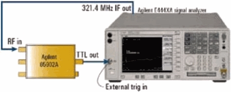 圖6PSA與Agilent85902A猝發載波觸發(BCT)集成的外部配置在沒有外部觸發源的情況下,可使用外部猝發載波觸發附件進行可靠的觸發,實現對WiMAX信號的穩定測量。圖6顯示了PSA頻譜分析儀與Agilent85092A猝發載波觸發(BCT)的集成。在對穩定的射頻猝發脈沖流進行檢波時,BCT會對要分析的射頻輸入信號進行采樣,并提供與猝發脈沖同步的TTL輸出信號以及一個LED狀態指標。