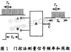 (1)在測量頻率時,被測信號加在A端,B端加門控信號,其信號寬度TB即是采樣時間,被測信號頻率為: