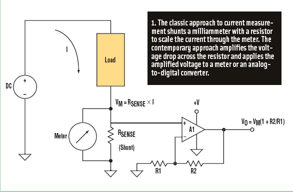 圖1:通過電路進行電流測量的最常用方法是測量一個低值電阻兩端的電壓降。