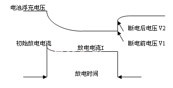 蓄電池在線內(nèi)阻監(jiān)測(cè),通過電池向放電模塊瞬時(shí)放電,測(cè)量電池?cái)嚯娝查g的電壓差,計(jì)算電池內(nèi)阻(R內(nèi)阻=△V/I),內(nèi)阻測(cè)試原理如圖3。由于在線監(jiān)測(cè)中出現(xiàn)的端電壓監(jiān)測(cè)誤差、放電過程電流波動(dòng)、斷電前后電壓補(bǔ)捉測(cè)量技術(shù),以及在線連接線電量衰檢等問題,內(nèi)阻在線監(jiān)測(cè)精度不高。目前,在國(guó)內(nèi)美國(guó)ABLER便攜式內(nèi)阻測(cè)試儀應(yīng)用較多,它的在線式內(nèi)阻測(cè)試系統(tǒng)測(cè)試精度與便攜式相比稍差,但與目前使用的其他產(chǎn)品相比還是要好些。