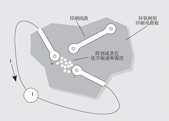 高濕度和離子污染能夠大大降低絕緣電阻。在發(fā)生結(jié)露或水吸收的情況時(shí),就會(huì)出現(xiàn)高濕度,而離子污染則可能由人體的油脂、鹽分和焊劑等產(chǎn)生。