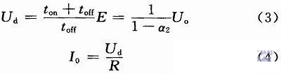 放電時,相當于Boost升壓斬波變換器,T1,T3截止,T2,T4工作,與VD1,VD3構成升壓斬波電路,能量從Uo傳到Ud,二者的關系為: