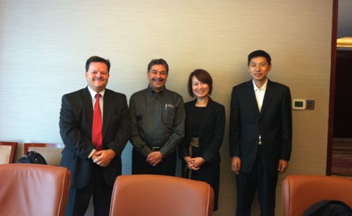 照片說明:(從左到右)Mark Burr-Lonnon( Mouser歐亞區(qū)副總裁), Conrad Fernandes(LeCroy公司亞太區(qū)副總裁),Daphne( Mouser 亞太區(qū)市場(chǎng)與業(yè)務(wù)拓展總監(jiān)),管立虹(LeCroy公司亞太區(qū)目錄銷售經(jīng)理)