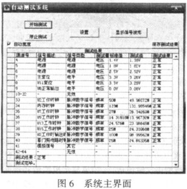 系統主界面見圖6,除了“開始停止”鍵外,有設置、查看信號波形和保存結果3 個按鈕,還有一個結果的輸出窗口。