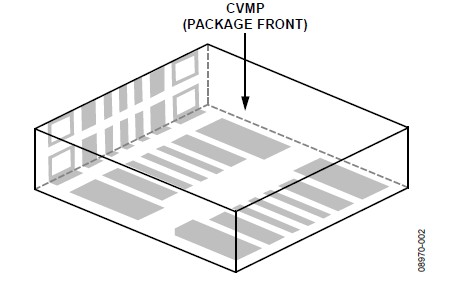 關于垂直和水平安裝方向的CVMP焊盤布局(焊盤圖形),請參閱本應用筆記的"焊盤布局"部分。CVMP背面的焊盤布局如圖7所示。注意,封裝正面上有一些額外的焊盤(見圖4)沒有顯示在焊盤布局中,這些焊盤用作測試點,不應進行電氣連接。