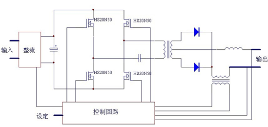 - 主控芯片選用電源IC KA3525驅動12個HOMSEMI大功率MOSFET HS20N50