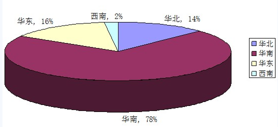 - 華南擁有著絕大部分的生產(chǎn)廠商占比高達(dá)43%