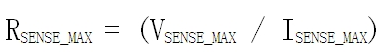 例如,如果通過檢測(cè)電阻的最大電流(ISENSE_MAX)預(yù)期為50mA,而高端電流檢測(cè)放大器所能接收的最大輸入電壓為250mV(VSENSE_MAX),則最大檢測(cè)電阻為5ohms (RSENSE_MAX)。