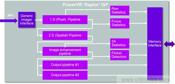 “Raptor” 具備高度功耗效率以及完備的可配置流水線特性,是手機和可穿戴設備等低功耗產品的理想選擇,并能無縫地擴展到提供 UltraHD 視頻、數百萬像素攝影和更高像素深度傳感器所需的性能。因為“Raptor” 是專為提供高效擴展性所開發,因此它的架構能夠輕松延伸到滿足這些具備更高像素的高端產品需求,而不會對基礎架構的效率帶來任何影響。