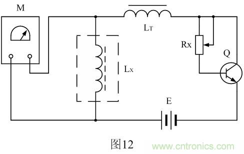 在圖11中,E為穩(wěn)壓電源,Rx為可調(diào)電阻,Q為晶體管大功率放大器(必須帶散熱片);調(diào)節(jié)穩(wěn)壓電源的輸出電壓,或改變可變電阻的阻值,就可以改變迭加電流的大小,但晶體管大功率放大器集電極與發(fā)射極之間的電壓降不要大于10V,否則,晶體管大功率放大器的損耗將很大。一般穩(wěn)壓電源都有電流輸出指示,所以在測(cè)試電路中不需要另外安裝電流表。