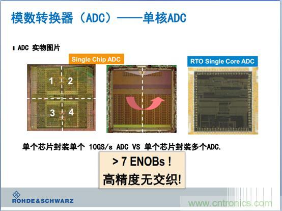 我們公司的示波器有什么特點?我們的高端的示波器上,有效的ADC的倍數可以達到7位,到這個指標的時候,如果不再做下面的闡述,下面就沒有概念,剛才講的示波器只有7位,其實大家知道一個示波器理論上是沒有8位,對于一個20倍的示波器,可以做到5到6之間,很難做到6位。第一代的示波器,通常做到的指標是6位,而我們可以做到7位。因為我們是高級工程師,在示波器里面有非常多的積累。傳統的示波器是10個G,但是實際上是由N個25兆的單個晶元的ADC合成的。我們公司花了8年的時間進入示波器的市場,我們設計出單核的芯片,達到了10個G,這個是不可思議的成就。所以我們可以實現位數是7位。