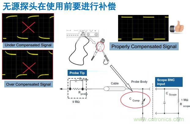 其實把示波器遞減掉,只是把示波器參考點放在你的機殼,示波器的電源有一個外電源,這個外電源是兩個電源串聯,中間接到220伏的,地減之后,示波器本身不是這個概念的地。但是很多時候因為示波器真正介入到插座上的地,不是概念上的地,很多時候再做一個接口會更好。任何的測量都是差度測量。因此我們要記住,所有問題都是線纜的問題。探頭的問題解決幾個問題,第一個是傳導,第二個是輻射,這個是所有問題的本質。我們在使用的時候,要盡可能的減少地環的地,第二個是盡可能讓探頭遠離輻射源和干擾源。還有一點,我們知道任何一個探頭,我們希望輸出電源越小越好,但是找不到這樣的探頭,一個探頭可以達到10兆歐姆,但是交易質量非常多,測量結果非常大,因為會把電路拉寬。因為探頭本質上是你的探頭的等效電路,并聯在電路上面,會吸收電,打垮電路。大家要注意這個影響。