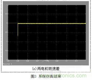 系統在采用偏差耦合控制策略的基礎上加入PID控制補償器,使系統能夠很好的實現同步控制。每臺電機都采用專門的控制器和速度補償模塊,通過svpwm方式對電機進行調速,并采用電流環與速度環的雙閉環控制,即每臺電機及其控制器組成一個閉環系統,各子系統之間通過速度補償模塊進行耦合,形成完整的控制系統,增強了系統的抗干擾性。仿真結果表明,基于svpwm的PID雙閉環系統具有超調量小、響應迅速、魯棒性強等特點,而加入偏差耦合控制策略的雙電機控制系統具有良好的同步性。