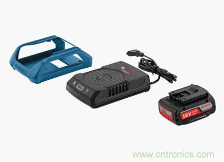 圖6:“無線充電系統”的基本組件:充電器、18伏電池和固定支架