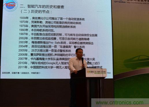參加分論壇之“智能交通與車聯(lián)網(wǎng)產(chǎn)業(yè)發(fā)展”的主講嘉賓包括車載信息服務(wù)產(chǎn)業(yè)應(yīng)用聯(lián)盟秘書長(zhǎng)龐春霖,中國(guó)科學(xué)院微電子研究所副所長(zhǎng)、中國(guó)科學(xué)院物聯(lián)網(wǎng)研究發(fā)展中心常務(wù)副主任陳大鵬,深圳市中興物聯(lián)科技有限公司總經(jīng)理古永承先生等。龐秘書長(zhǎng)表示在智能汽車領(lǐng)域隱藏著巨大的商機(jī),隨著智能終端和手持終端交互的互聯(lián)化,主動(dòng)安全措施的標(biāo)配化等,隱藏的商機(jī)將被不斷發(fā)現(xiàn)并挖掘。陳大鵬主任從行業(yè)的融合、競(jìng)爭(zhēng)的轉(zhuǎn)變、企業(yè)的轉(zhuǎn)型、汽車與車聯(lián)網(wǎng)四大方面就車聯(lián)網(wǎng)與新能源汽車做了詳細(xì)介紹。他表示,信息技術(shù)與傳統(tǒng)行業(yè)的融合可以為傳統(tǒng)行業(yè)開(kāi)辟新的局面,未來(lái)的汽車必然是電子信息和軟件主導(dǎo)的新能源智慧車輛。