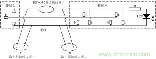 1.電源排插上是否存在LED指示燈,如果有,那么這個指示燈的電流就會被作為負(fù)載電流進(jìn)行測量。排插接線如圖1所示,大多數(shù)排插都會有LED指示燈,通電后流經(jīng)LED燈的電流一般為mA級,因此,對被測電流帶來誤差,尤其是測待機(jī)功耗影響更大。