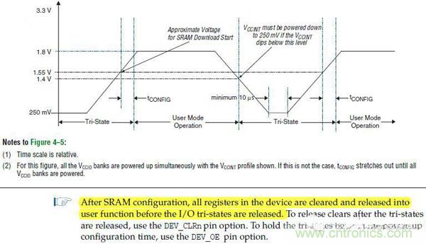 另外,該產(chǎn)品用戶如果希望配置完成后CPLD內(nèi)部各個寄存器的狀態(tài)處于可控或者特定的狀態(tài)(尤其當(dāng)其值不一定是清零的狀態(tài)),那么用戶可以使用器件提供的專用管腳DEV_CLRn來達到所期望的效果。