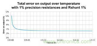 圖3: 總誤差, 假設電阻精度為0.1%           Rshunt精度為 1%