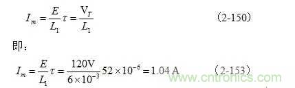 根據上面分析,以及圖2-55和圖2-56,正常工作時,流過高壓包初級線圈的最大電流Im不應該超過極限電流值Imax的70%,由此,可以求得流過高壓包初級線圈的極限電流Imax為1.49 A 。