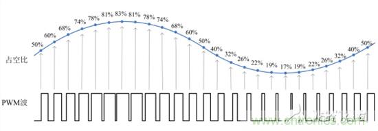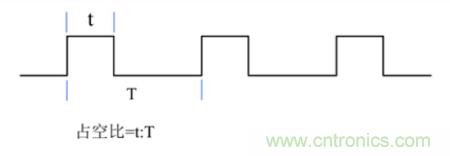 脈沖寬度調(diào)制(PWM)是一種對(duì)模擬信號(hào)進(jìn)行數(shù)字編碼的方法。通過高分辨率計(jì)數(shù)器的使用,方波的占空比被調(diào)制用來對(duì)一個(gè)具體模擬信號(hào)進(jìn)行編碼。PWM信號(hào)仍然是數(shù)字的,因?yàn)樵诮o定的任何時(shí)刻,滿幅值的直流供電要么完全有(ON),要么完全無(OFF)。電壓或電流是以一種通(ON)或斷(OFF)的重復(fù)脈沖序列被加到模擬負(fù)載上去。通的時(shí)候即是直流供電被加到負(fù)載上的時(shí)候,斷的時(shí)候即是供電被斷開的時(shí)候。只要帶寬足夠,任何模擬值都可以使用PWM進(jìn)行編碼。而占空比就是高電平持續(xù)時(shí)間與整個(gè)周期時(shí)間的比值,占空比越大,高電平持續(xù)的時(shí)間越長(zhǎng),模擬電路開通的時(shí)間就越長(zhǎng),如圖1所示。