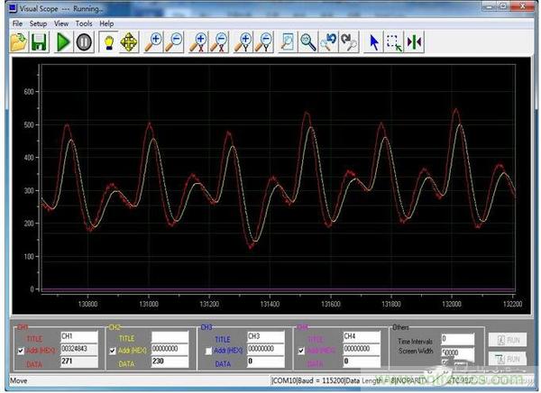 LDO本身的電壓輸出非常穩(wěn)定,由于筆者ADC采樣為10位,在手指未放入傳感器時(shí),電壓值幾乎保持在3/1024以內(nèi)跳動(dòng)。所以筆者默認(rèn)這款LDO能達(dá)0.3%以下的精度。下圖便是筆者關(guān)于LDO給模擬部分供電后的心率采樣波形。紅色為一階低通濾波前的波形,黃色為低通濾波后的波形。對(duì)實(shí)時(shí)性要求不高的系統(tǒng)來說,這樣的模擬量波形已經(jīng)能夠滿足項(xiàng)目的需求。