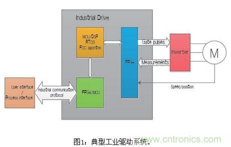 傳統(tǒng)上,工業(yè)電機(jī)控制應(yīng)用使用微控制器或DSP來(lái)運(yùn)行電機(jī)控制所需的復(fù)雜算法,在大多數(shù)傳統(tǒng)的工業(yè)驅(qū)動(dòng)中,FPGA與微控制器或DSP一起使用,用于數(shù) 據(jù)采集和快速作用保護(hù)。除了數(shù)據(jù)采集、PWM生成和保護(hù)邏輯,FPGA傳統(tǒng)上并未在實(shí)現(xiàn)電機(jī)控制算法方面發(fā)揮主要作用。