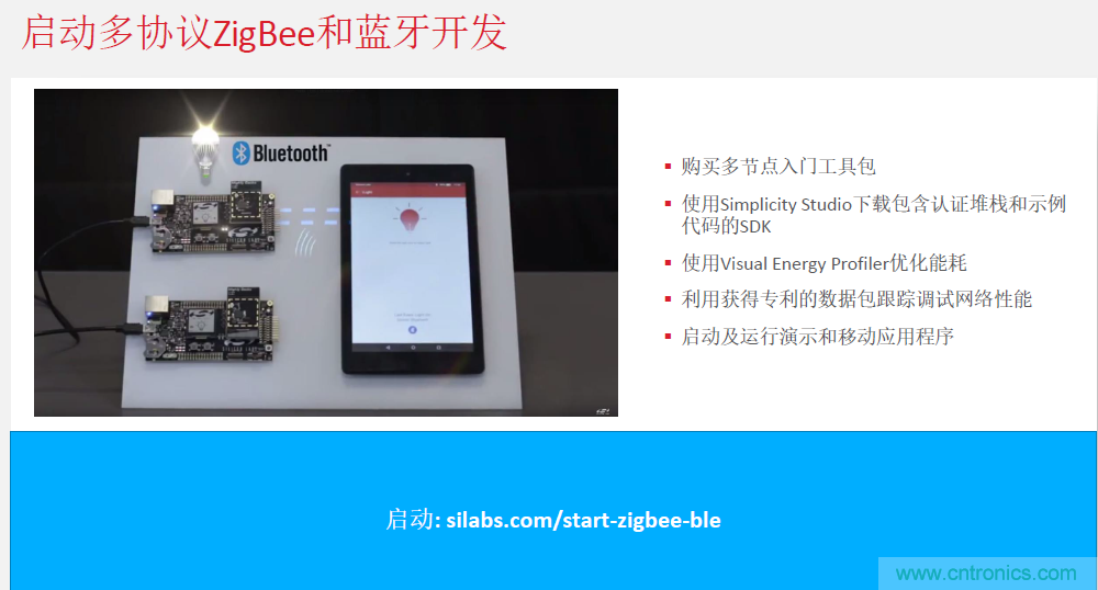 要實現低功耗的設計,供應商提供的設計軟件很重要。Silicon Labs動態多協議軟件由高度優化的無線協議棧和在Micrium OS上運行的高級無線電調度器提供有力支持。開發人員可在Simplicity Studio中獲得軟件開發工具包(SDK),其中也包括基于所選Wireless Gecko開發套件的可連接照明演示代碼和移動APP參考設計。
