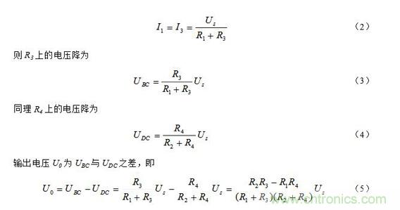 注意:上面(7)~(9)式中的R和其R′ 均為預(yù)調(diào)平衡后的電阻。此外,當(dāng)電阻增量△R較小時(shí),即滿足△R《《R時(shí),上面(7)~(9)三式的分母中含△R項(xiàng)可略去,公式可得以簡(jiǎn)化,這里從略。