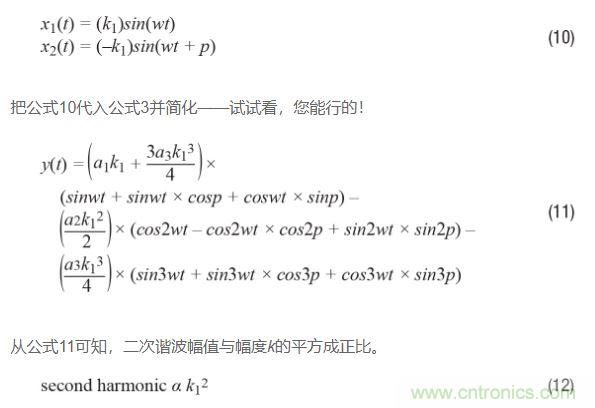 如果回過頭比較公式9和公式12,并且假設三角恒等式運用正確,那么可以得出如下結論:二次諧波受相位不平衡影響比受幅度不平衡影響更嚴重。原因如下:對于相位不平衡,二次諧波與k1的平方成正比;再看公式12,對于幅度不平衡,二次諧波與k1和k2的平方差成正比,或看公式9。由于k1和k2大致相等,因此這種差異通常很小,特別是如果將其與平方數(shù)進行比較!