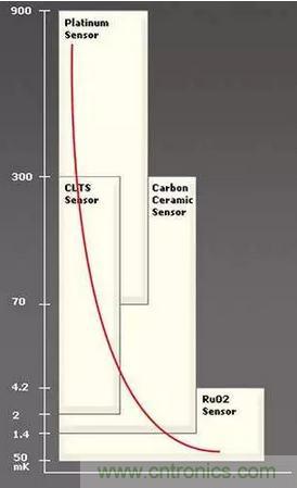 有些令人驚訝的是,一些在“普通”溫度下的常用傳感器甚至可以在較寬的個位數(shù)區(qū)間內(nèi)工作(圖1),其中包括RTD(使用鉑或銠鐵)、鍺,甚至經(jīng)典的碳基電阻器。然而,這些裝置的強磁場會引起幾K的傳感器誤差。研究現(xiàn)狀是,對低K傳感的需求非常大,以至于這些傳感器是許多供應(yīng)商提供的標(biāo)準(zhǔn)目錄產(chǎn)品(想一想,這是相當(dāng)驚人的)。