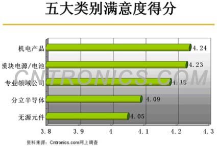 在五大類別的用戶滿意度調(diào)查中,回復(fù)者對(duì)機(jī)電類產(chǎn)品和模塊電源/電池類公司滿意度較高,而對(duì)無源元件和分立半導(dǎo)體公司滿意度最低,電子元件技術(shù)網(wǎng)調(diào)查分析發(fā)現(xiàn):