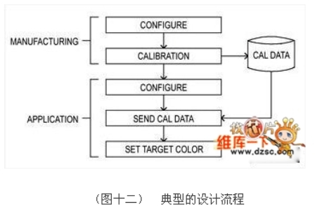 在生產階段,系統可以透過使用標準的CIE相機進行調校,調校資料必須儲存在一個外部的短暫的記憶體中,而系統在導入到應用后并不需要進行調校程序。在應用上,使用者首先對設備進行組態,接著將先前儲存的調校資料寫入調校暫存器,這是一個簡單的讀出然后寫入的程序,完成后,系統就可以接受目標色的輸入。