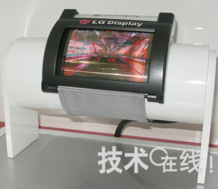 韓國LG顯示器在顯示器相關展會“FPD International 2009”(10月28~30日,太平洋橫濱會展中心)上,展出了可彎曲戴在手腕上的柔性有機EL顯示器。此為該公司在學會“SID 2009”上,于美國環宇顯示技術(UDC)展位公開過的柔性有機EL顯示器更新版。