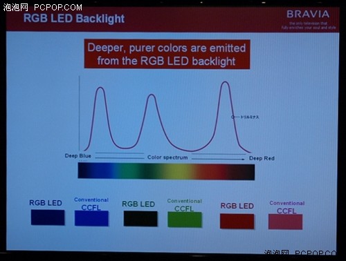 此外,RGB-LED在光譜特性上也大幅優(yōu)于CCFL。RGB三種LED發(fā)出的三原色光非常純正,能量高度集中.這點(diǎn)在最后的色域范圍方面體現(xiàn)的最為明顯。據(jù)工程師介紹,采用了“動態(tài)麗彩LED背光源”的BRAVIA在實(shí)驗(yàn)室中測得的色域范圍已經(jīng)接近普通液晶的2倍,達(dá)到了一個前所未有的新高度。因此,的旗艦BRAVIA也實(shí)現(xiàn)了對最新廣色域標(biāo)準(zhǔn)x.v.Color的支持,如果配合使用支持x.v.Color色域的攝像機(jī)使用,消費(fèi)者將看到非常逼真自然的色彩和畫面。