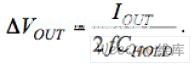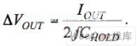 在第二階段,C1+連接到輸出,放電電流(電流大小與前面的充電電流相同)通過C1流到負(fù)載。在這個階段,輸出電容電流的變化大約為2IOUT。盡管這個電流變化應(yīng)該能產(chǎn)生一個輸出電壓變化為2IOUTESRC_HOLD,使用低ESR的陶瓷電容使得這種變化可以忽略不計(jì)。此時,CHOLD按下面的電量線性電位充電︰