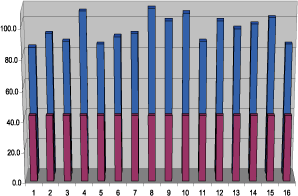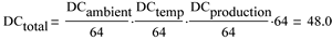 從上可見,運(yùn)用48的組合點(diǎn)校正值即可得到56mcd的期望亮度。請注意,由于溫度引起亮度下降,故本計算中的起始電流被設(shè)置為起始生產(chǎn)電流的90%。