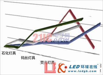 圖2代表了燈具發展的不同光源革命時期,四個方向的大略曲線。將前次光源革命進入到LED照明燈具的線條變化,與之前幾次的照明革命比較后,會發現價格的曲線變化很劇烈,而真正發展的軌跡應該是要指向“未來發展”的位置,而非“現有LED”的價格位。而現有LED燈具“結構設計彈性”的發展又不夠強勁;能源效率部分也還有進步的空間。這也表示目前LED照明燈具的設計與發展,還沒有到達它應該有的位階。