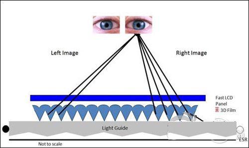 對指向光源(DirectionalBacklight)3D技術投入較大精力的主要是3M公司,指向光源(DirectionalBacklight)3D技術搭配兩組LED,配合快速反應的LCD面板和驅動方法,讓3D內容以排序(sequential)方式進入觀看者的左右眼互換影像產生視差,進而讓人眼感受到3D三維效果。前不久,3M公司剛剛展示了其研發成功的3D光學膜,該產品的面試實現了無需佩戴3D眼鏡,就可以在手機,游戲機及其他手持設備中顯示真正的三維立體影像,極大地增強了基于移動設備的交流和互動。