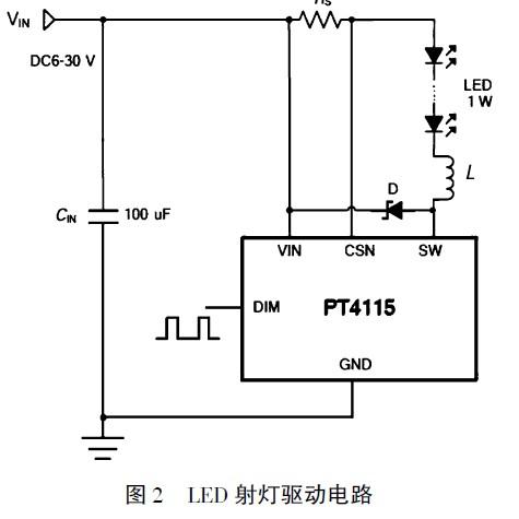 PT4115是一款連續電感電流導通模式的降壓恒流源,用于驅動一顆或多顆串聯LED.PT4115輸入電壓范圍為6V~30V,輸出電流可調,最大可達1.2A。根據不同的輸入電壓和外部器件,PT4115可以驅動高達數十瓦的LED.PT4115內置功率開關,采用高端電流采樣設置LED平均電流,并通過DIM引腳可以接受模擬調光和很寬范圍的PWM調光。當DIM的電壓低于0.3V時,功率開關關斷,PT4115進入極低工作電流的待機狀態。