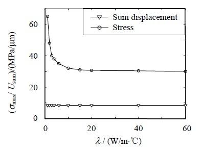 2.4 材料導(dǎo)熱系數(shù)對(duì)應(yīng)力,應(yīng)變和溫度的影響
