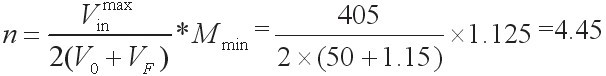 知PFC級輸出電壓為=405V,經查得變壓器輸出端整流二極管FFPF12UP2ODN壓降VF=1.15V,要求輸出電壓V0=50V則變壓器匝數比n為:
