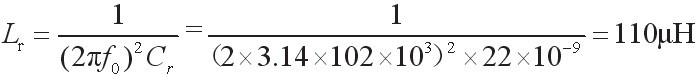 對于同樣的規格,諧振電感和電容都可以取不同的數值,在這里Cr的取值有個下限,Cr的數值需使得串聯的諧振槽可以恒定增益區間的工作,而選擇較大的Cr會使得Cr上的電壓應力降低。這樣帶來的問題是使得諧振槽的阻抗降低,這會影響短路時的性能。當諧振槽阻抗降低時,則會使短路時電流變大,而且為了限制短路電流,會需要更高的開關頻率。這里選擇為22nF耐壓630V的電容。