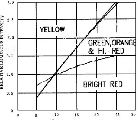 圖3 給出了發(fā)光二極管的相對(duì)亮度與其中流過的電流之間的關(guān)系,從曲線中可以看出: 在一定的正向電流工作范圍內(nèi),其發(fā)光亮度與其中流過的電流近似成正比,屬于電流驅(qū)動(dòng)型器件。所以只要能保證每個(gè)L ED 發(fā)光管中流過的電流為一常數(shù),就能保證其亮度一致。