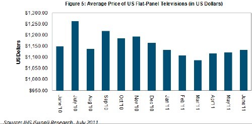 據IHS iSuppli公司的報告:“Price Gap CONTInues between Active vs. Passive 3-D LCD TVs”,由于價格較高的主動3D液晶電視供應增加,美國平板電視價格6月份連續第三個月上漲。