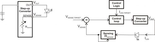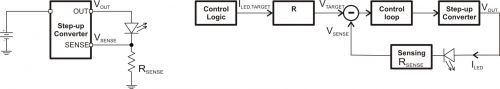 將閃光燈 LED 與一個電流檢測電阻串聯,然后通過一個升壓轉換器來驅動,這是一種簡單的方法。圖 1 描述了這種方法。