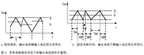按照PWM調節方式,可以分成恒定頻率和恒定關斷時間兩類(圖1)。