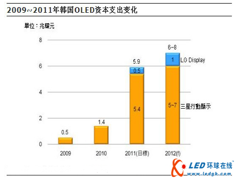 - 2011年韓國(guó)OLED資本支出將為5.9兆韓元